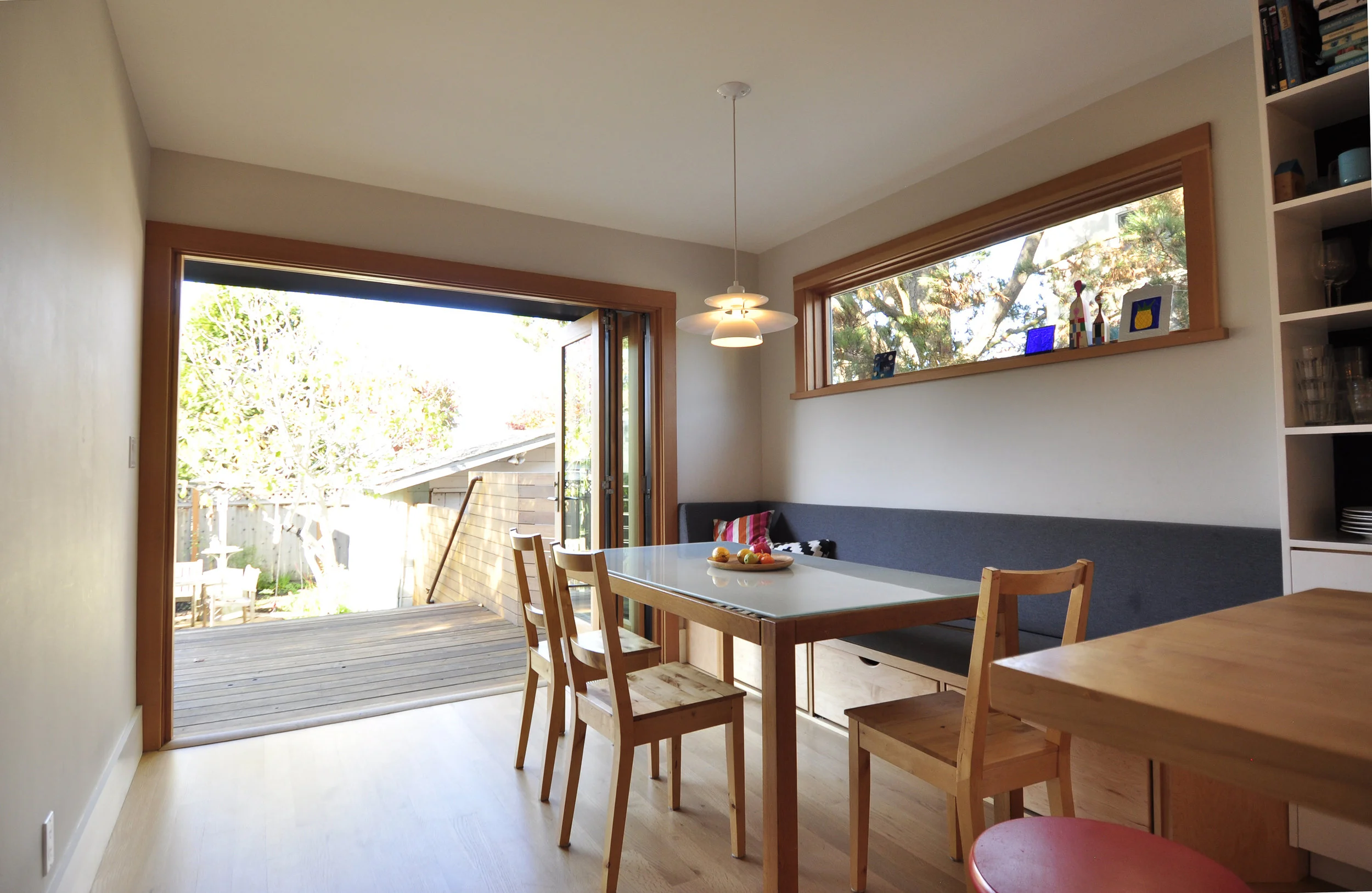This young family of five showed me their 1920s, strangely remodeled, bungalow with small rooms, no connection to the yard, no dining room, and a funky kitchen. The lot was small and we could add only 84 square feet.